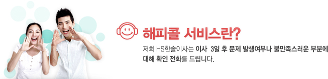 ÀÌ¿¡ ÀúÈñ HSÇѼÖÀÌ»ç´Â ÀÌ»ç 3ÀÏ ÈÄ ¹®Á¦ ¹ß»ý¿©ºÎ³ª ºÒ¸¸Á·½º·¯¿î ºÎºÐ¿¡ ´ëÇØ È®ÀÎ Àüȸ¦ µå¸³´Ï´Ù.
